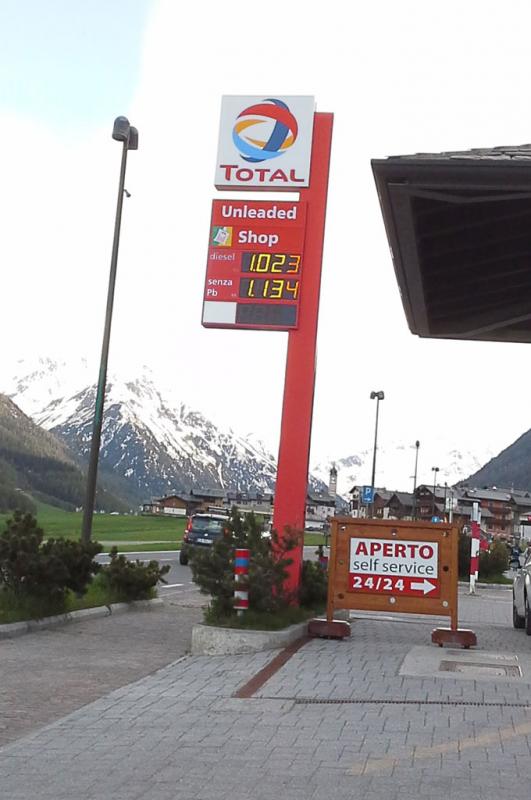 Consiglio: conviene organizzarsi per fare il pieno di carburante a Livigno, in quanto in paese il rifornimento costa molto meno (benzina euro 1,10 al litro, diesel euro 1,00 al litro) .
