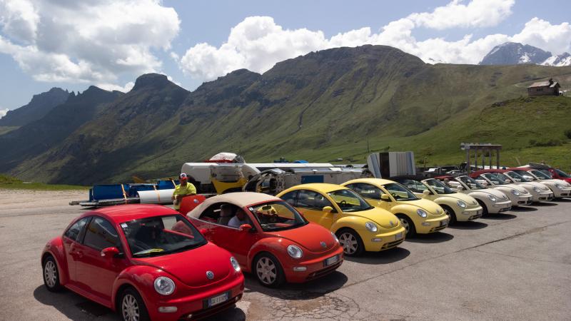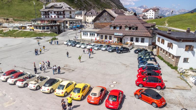 Meraviglioso poi il percorso per raggiungere il passo Pordoi con le nostre coloratissime New Beetle, che in ordine cromatico hanno destato la curiosità di molti locali e turisti.
