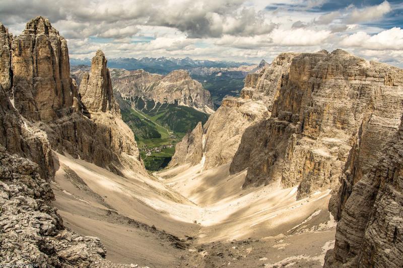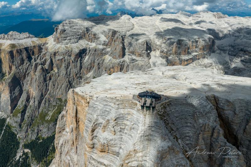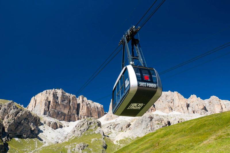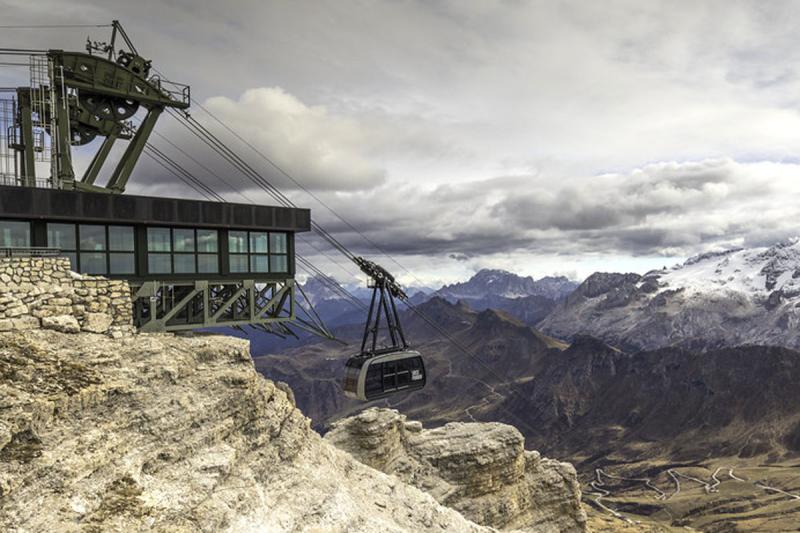 In meno di 5 minuti, grazie ad un ardito e verticale percorso mozzafiato, dal Passo Pordoi si viene letteralmente "catapultati" a 2950 metri in un universo di roccia dolomitica senza pari al mondo.