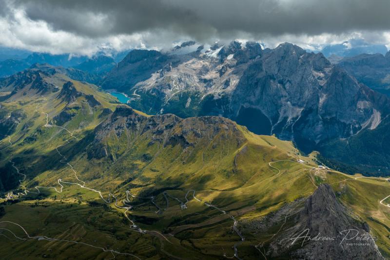 Il Passo Pordoi, al confine tra Veneto e Trentino-Alto Adige, è un valico alpino delle Dolomiti, situato a 2.239 metri s.l.m., tra il Gruppo del Sella a nord e il Gruppo della Marmolada a sud, è conosciuto sia per le sue straordinarie vedute che per la sua storia.