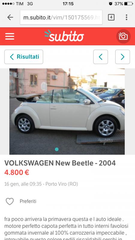 Sto valutando l'acuqisto di un a new beetle cabrio,mi piacerebbe beige o nera!