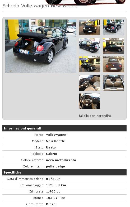 Una "Volkswagen New Beetle 1.9 TDI 105CV Cabrio" 7.400euro e l'altra "Volkswagen New Beetle 1.9 TDI 105CV Cabrio UNITED" 8.900euro.