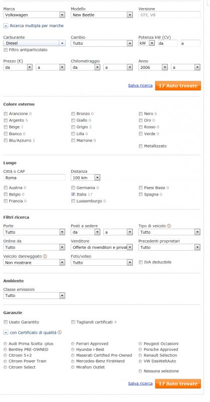Oh no è facilissimo non trovarla su Autoscout. Ci ho speso 2 anni e mezzo, su Autoscout, e poi l'ho ordinata nuova:cool::p!