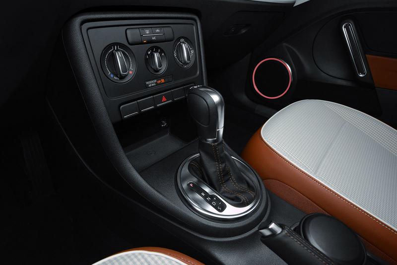 Dentro la storia si ripete, e rifinito con dettagli unici di questa edizione: bracciolo, leva del freno a mano e rivestito in similpelle (pelle wannabe), sedili in tessuto “Karree” e volante in pelle.