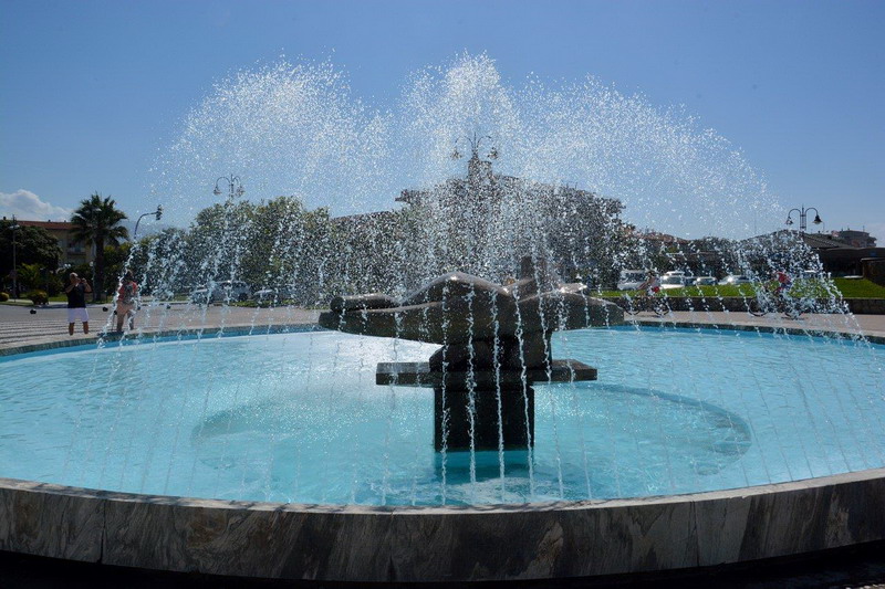 Partenza alla volta di Pietrasanta sfilando per le vie del centro e parcheggiando le nostre auto in un suggestivo ventaglio colorato attorno alla fontana della caratteristica piazza del pontiledi Marina di Pietrasanta eccezionalmente concessa alle vetture.