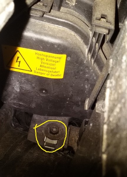 La vite torx cerchiata è quella da allentare (è sufficiente allentarla, non toglierla) per estrarre il fanale assieme alle due torx superiori.