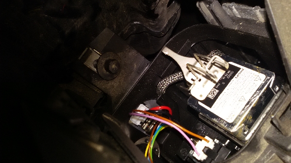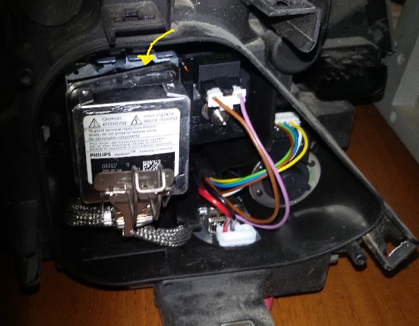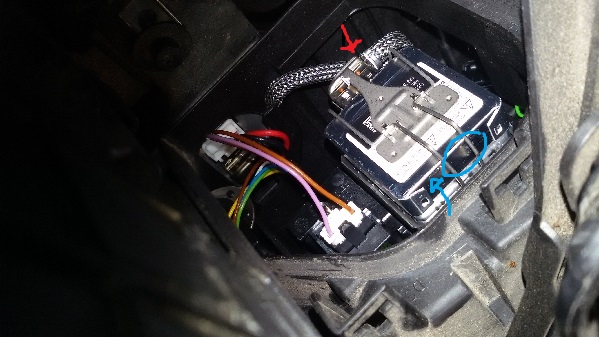 A questo punto sfilando lo spinotto verso il basso è possibile estrarre la lampada per sostituirla con la nuova ma dato che a me lo spinotto non si estraeva con facilità, avendo paura di rompere qualche linguetta che lo tratteneva, ho estratto il faro.